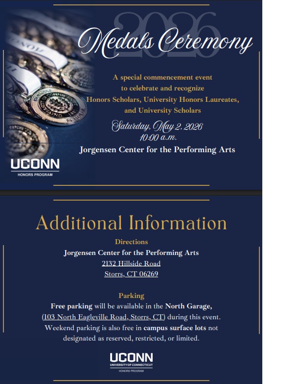 The 2026 Medals Ceremony for Honors, University Honors Laureate, and University Scholar awards will be taking place on May 2, 2026, at 10 AM.